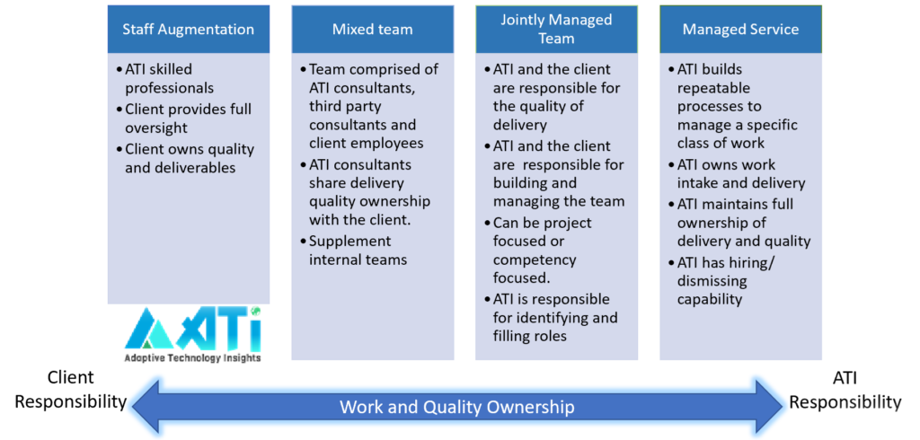 Regardless of the engagement model, we try to provide an ATI leadership structure to our employees, to provide them training, HR support, mentoring and professional support. This makes for confident and happy consultants, which makes for a better-quality engagement.